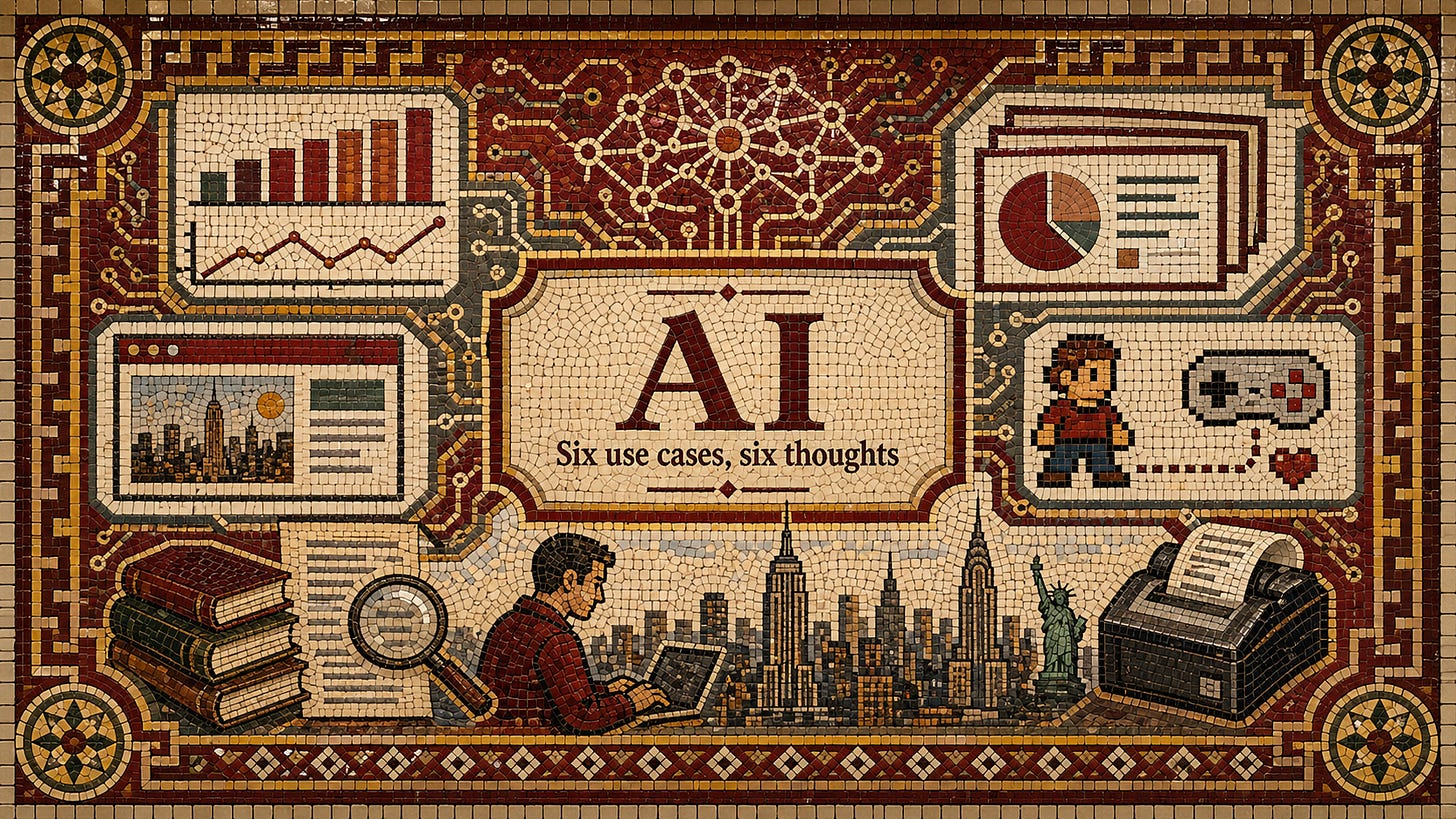 Each of these six use cases is “regular.” AI has helped me with my health (I’m not the only one) and life in more dramatic ways, but I want to stay anchored on everyday type stuff people will encounter, especially at work. If I were just making a bulleted list of stuff I do with AI, it would look similar to this one!