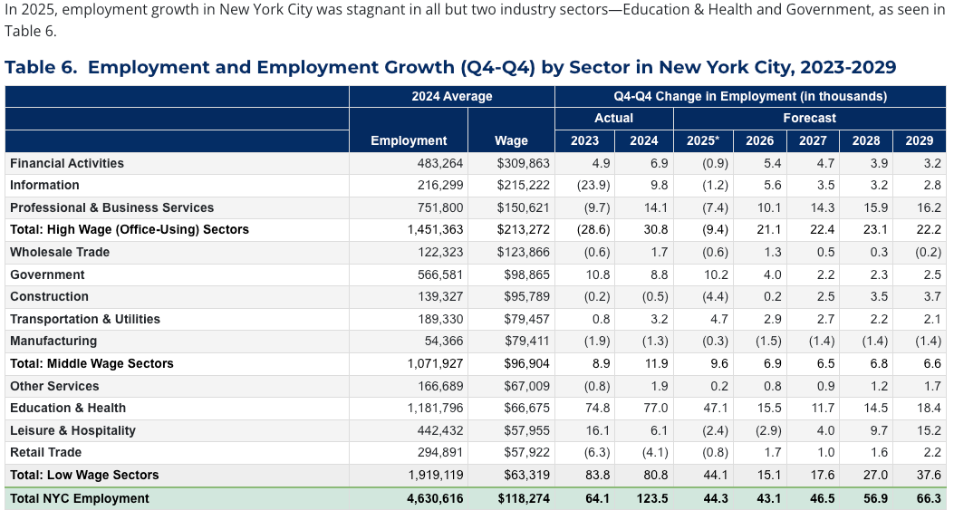 As plenty of people have pointed out, including New York City Comptroller Mark Levine, New York City’s production of jobs would be negative without taxpayer-funded home healthcare jobs, which are also relatively low-wage and don’t pay much back in taxes. Otherwise, 2025 saw a net decrease of 38k jobs, following a years-long downward trend in high wage jobs especially.