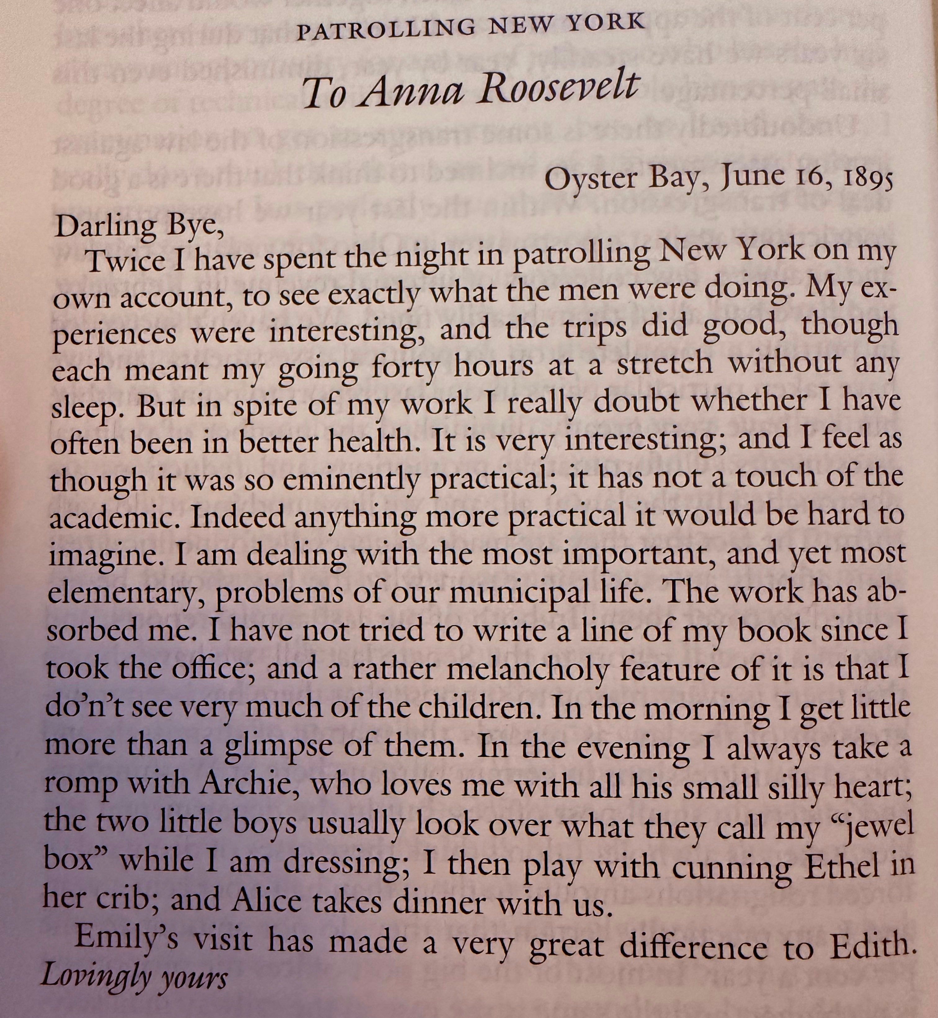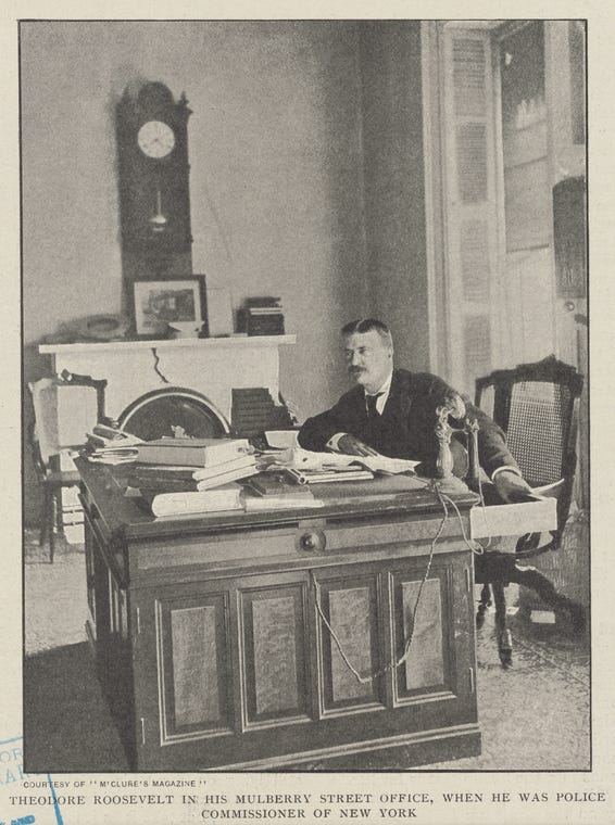 Note: opening pull quote is from page 187 of TR’s autobiography, from the chapter on his time with the New York police.